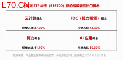 重点布局国产算力(IDC、服务器)、AI应用领域的大数据ETF华宝(516700)被动跟踪中证大数据产业指数,涉及大数据存储、大数据生产、大数据分析、大数据运营平台、大数据应用等领域,权重股汇聚中科曙光、科大讯飞、紫光股份、浪潮信息、中国长城、中国软件等龙头股。