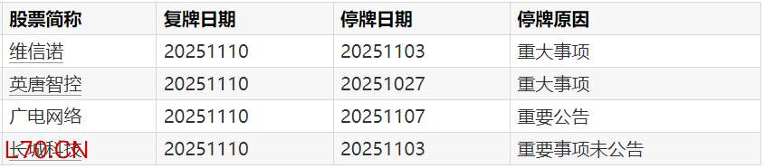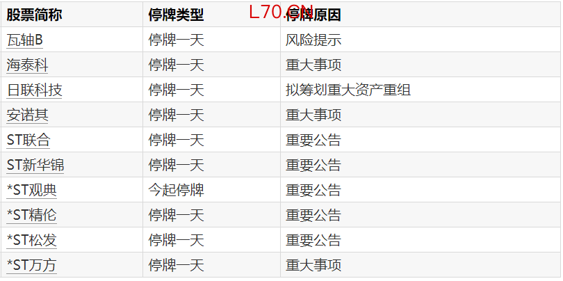 A股停牌提示:10股今日停牌
